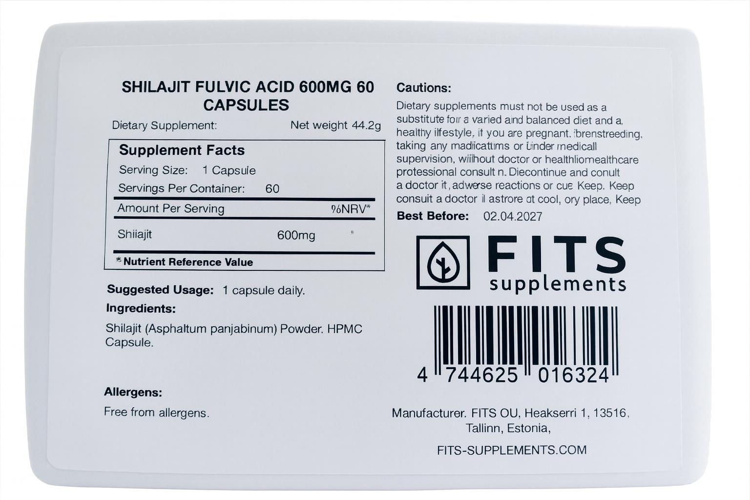 Shilajit Ácido Fúlvico 600mg. 60 cápsulas