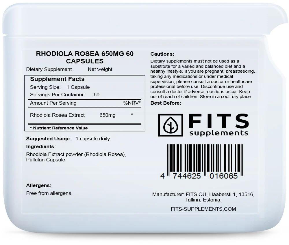 Ingredientes: Polvo de extracto de rodiola (Rhodiola Rosea), cápsula de pululano.